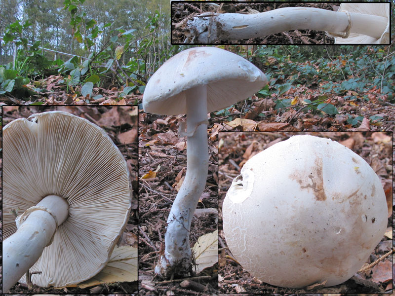 Geruch unbedeutend (oder vielleicht angenehm). Lamellen frei. Tief wurzelnd ohne Volva. Lappige flüchtige Scheide.