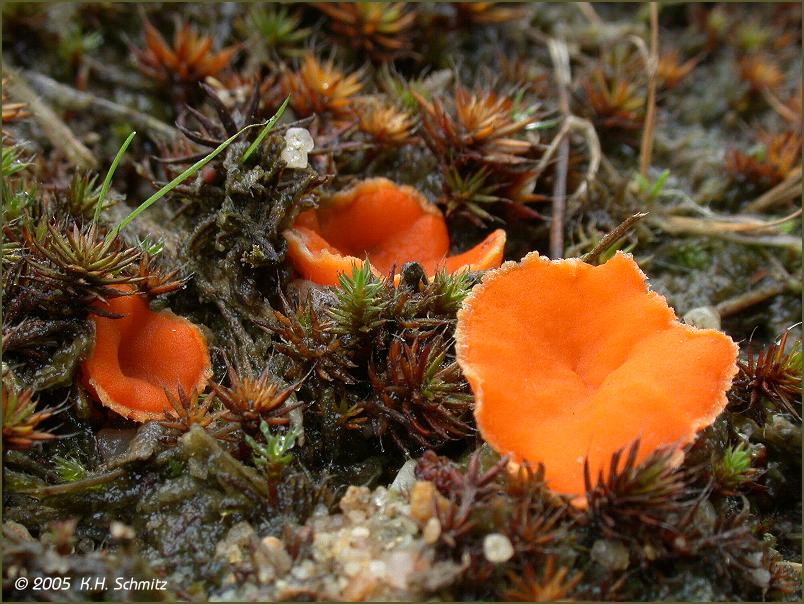 einige Funde von meiner heutigen Tour. Ein Biotop mit sandigen Böden, Heide, Kiefern, Birken, Magerwiesen. Ein Moosbecherling, Neottiella spec.