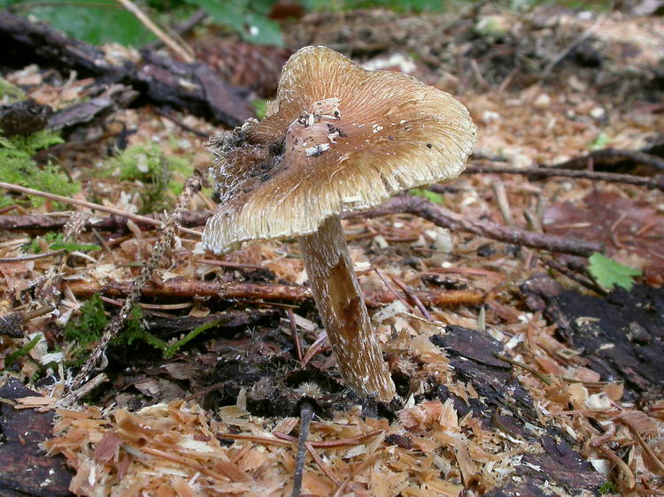 den folgenden Risspilz fand ich leider einzeln wachsend auf einem Holzlagerplatz mit Sägeabfällen. Dort wuchs er tief eingesenkt ins Substrat bei Fichte und Tanne.