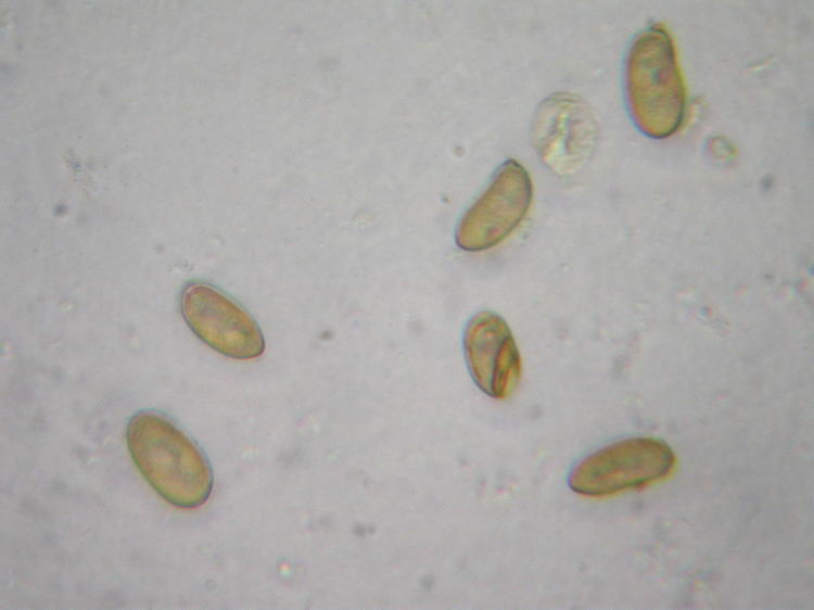 Sporen: langelliptisch bis bohnenförmig, mit auffallendem halbkugeligen KP, riesig, 12-19 x 6-9; Qm=2 (1,8-2,2);