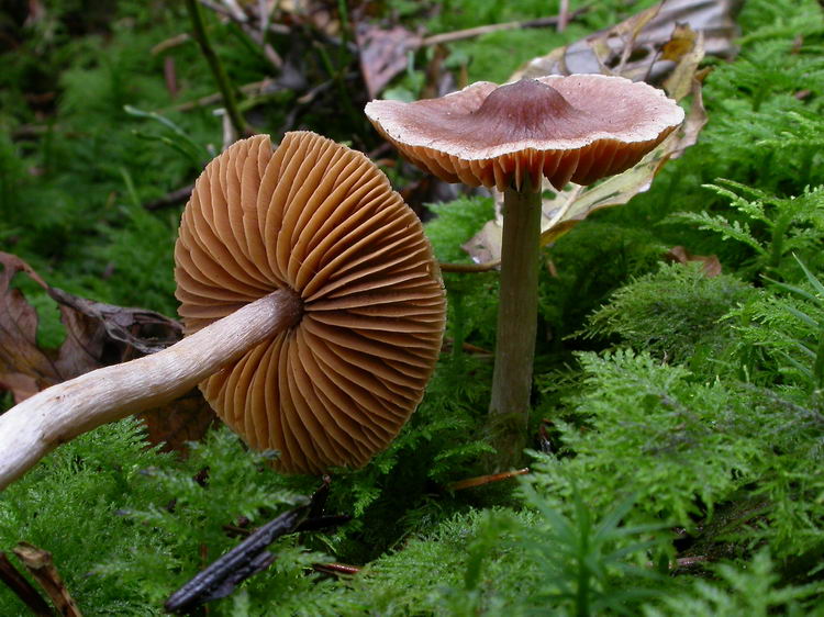 Servus, kurz vor dem Eintreffen des ersten Schnees hat sich im Oberland nochmal ein hübscher Wasserkopf meiner Kamera angedient. Die Exemplare wuchsen auf ca. 800 m im Nadelwald (Tannen, junge Fichten) im Moos und ähneln ein wenig den Exemplaren aus meinem Beitrag vom 6. November ("Wasserkopf-Bestimmungsproblem"), weisen aber keine Violetttöne und am Stiel keine Gürtelung/Natterung auf. Vielleicht könnte es sich diesmal um C. fasciatus handeln. Hier die Fotos mit Beschreibung: