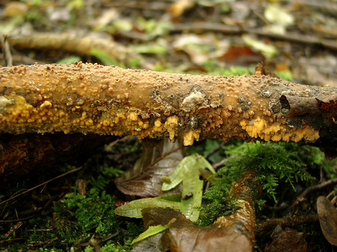 Ist das Peniophora laeta, der Hainbuchen-Zystidenrindenpilz ? Substrat war Hainbuche Herzliche Grüße