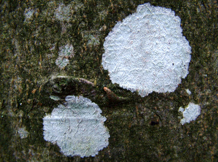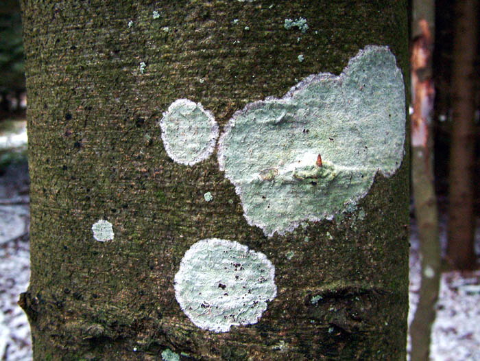 Hallo zusammen, diesen weißen Flecken auf Buchenrinde begegne ich immer wieder. Bevor ich mein Mikroskop anwerfe, will ich mal nachfragen, ob sich da jemand auskennt. Flechte oder noch ein Krustenpilz?