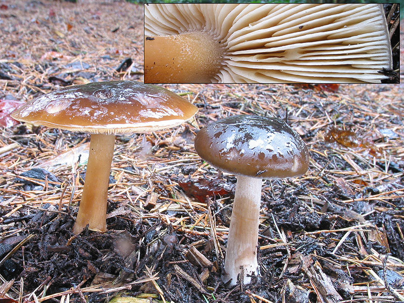 2) Der zweite ist Ritterlingsähnlich (Weichritterling?), er hatte ziemlich weissen Sporenpulver, Hutdurchmesser ca. 8-12cm. Auch hier der Standort unter Kiefern, diesmal aber waren in der Nähe auch viele ziemlich exotische Bäume.
