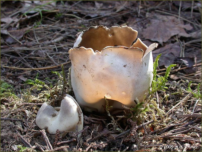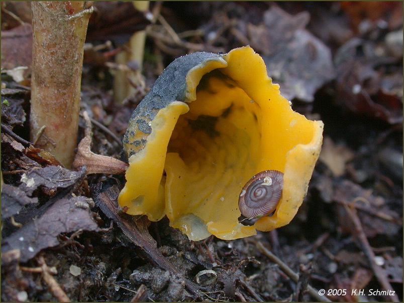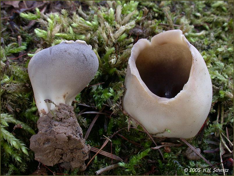 Auch im März waren unsere Hauptfunde Becherlinge bzw. genauer gesagt die Schwarzweiße Becherlorchel, Helvella leucomelaena und der Leuchtender Prachtbecher, Caloscypha fulgens ein Erstfund für uns. Ende März machten wir dann noch eine Exkursion in die Eifel, zu einem natürlichen Standort des Märzenbecher, Leucojum vernum.
