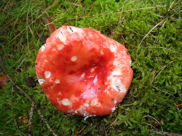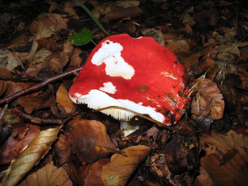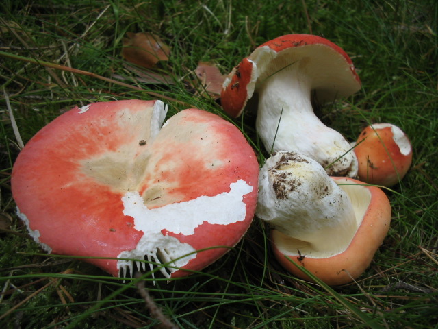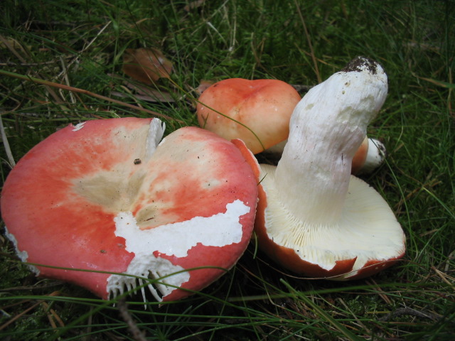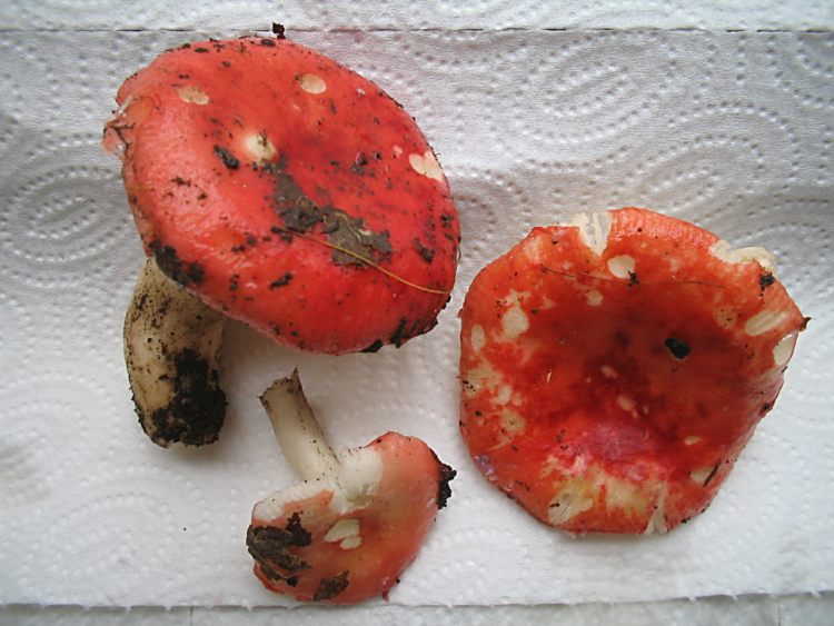Kiefern-Spei-Täubling Russula emetica var. silvestris Ein sehr scharfer, leuchtend roter Täubling mit fast rein weißem Sporenstaub.