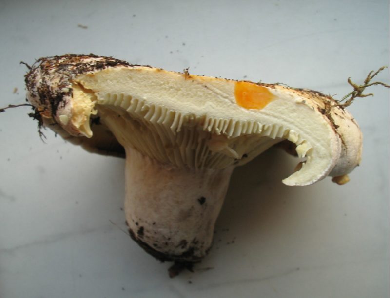 mit nach Hause genommen (warum auch immer). Ich muß gestehen das ich ihn vor Ort, ganz schnell zuerst als Russula delica (Gemeiner Weißtäubling) bestimmt habe.