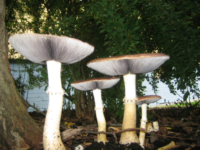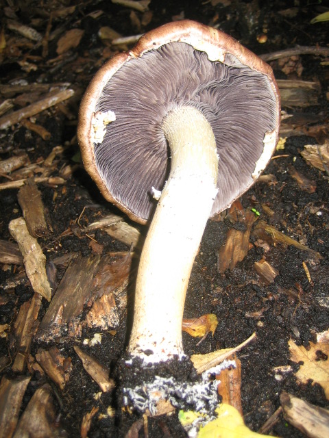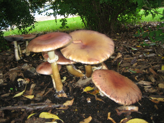 Hallo, ein Freund hat mich um Hilfe gebeten. Vor seiner Haustür wächst ein Pilz, den er nicht kennt (ich leider auch nicht). Ist es vielleicht ein Träuschling ? Er wächst unter einem Pflaumenbaum mitten in der Stadt, in einem rindengemulchten Beet. Vielen Dank im voraus.