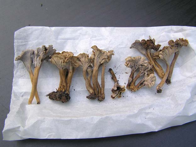 Und dann die Trompeten (Craterellus cornucopioides) als Erstfund im heimischen Wald: