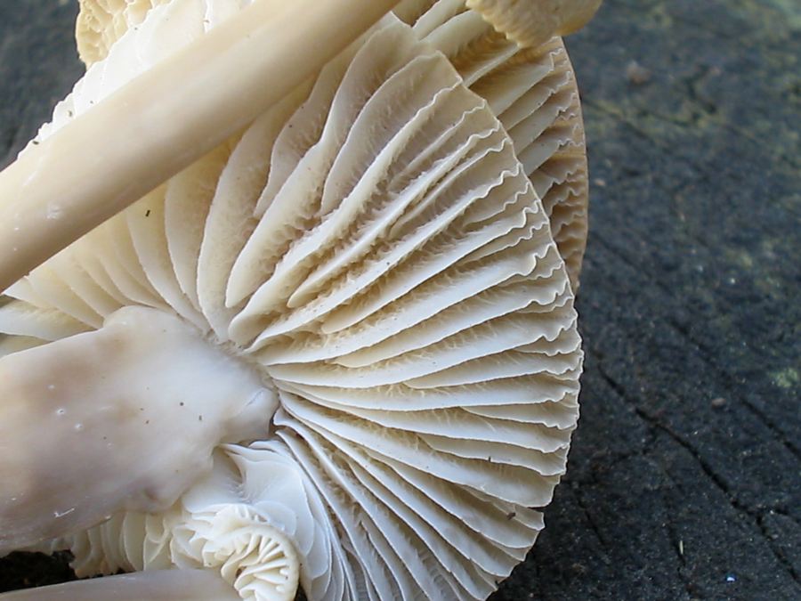 deutliche "Adern" zwischen und an den Lamellenblättern