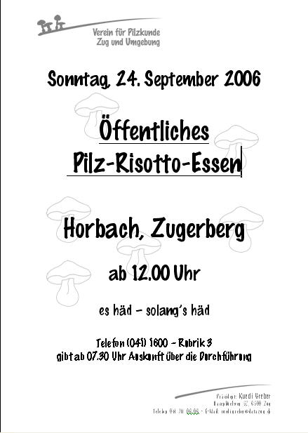 Bin gespannt, ob sich einige Forumsteilnehmer auf dem Zugerberg bei unserer Pilzhütte "im Horbach" einfinden werden um unser feines Pilz-Risotto (mit selbstgesammelten und kontrollierten Pilzen!!!) zu geniessen.