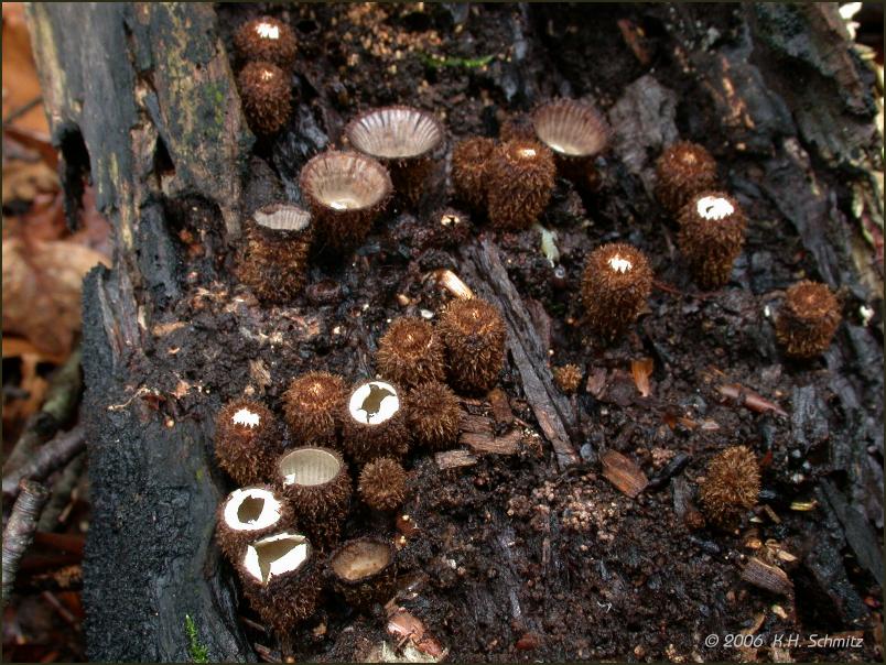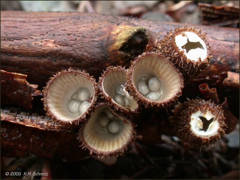 da war noch am Wegesrand der Gestreifte Teuerling, Cyathus striatus