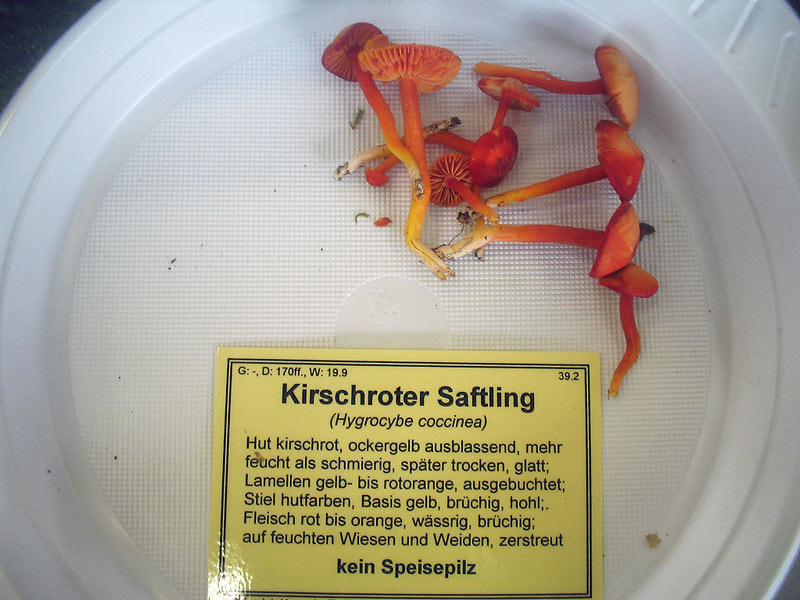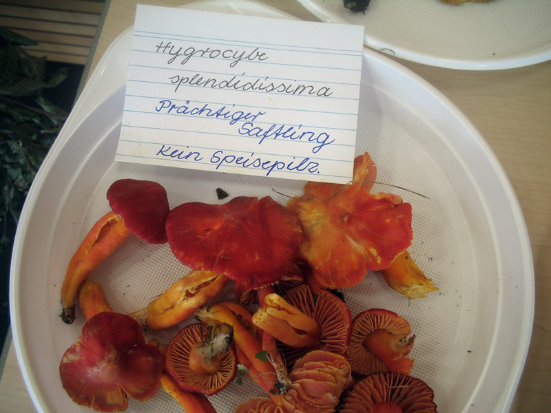 Ich zeige abwechselnd die Ausstellungsfotos und danach die heutigen Standortbilder 1. Hygrocybe splendidissima - Prächtiger Saftling