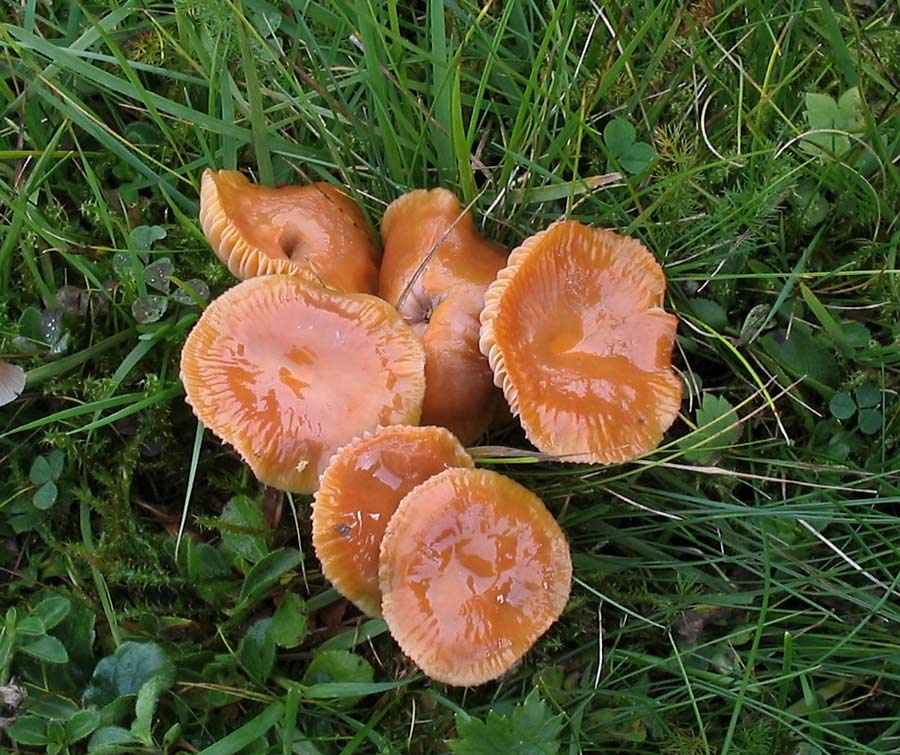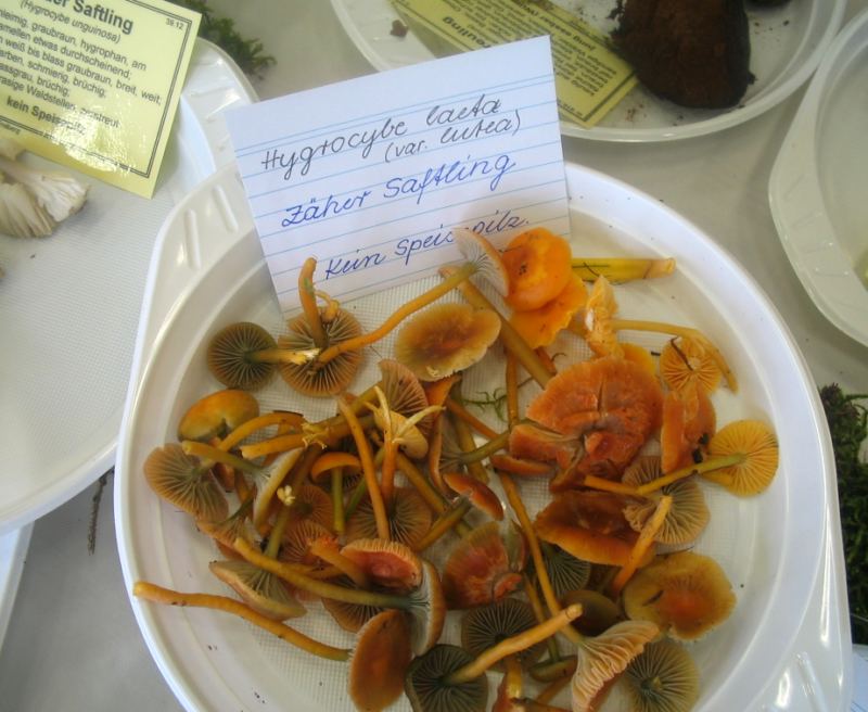 10. Zäher Saftling - Hycrocybe laeta dieser Saftling ist sehr schleimig und riecht nach geriebener Grapefruitschale (oder wie angebranntes Gummi)