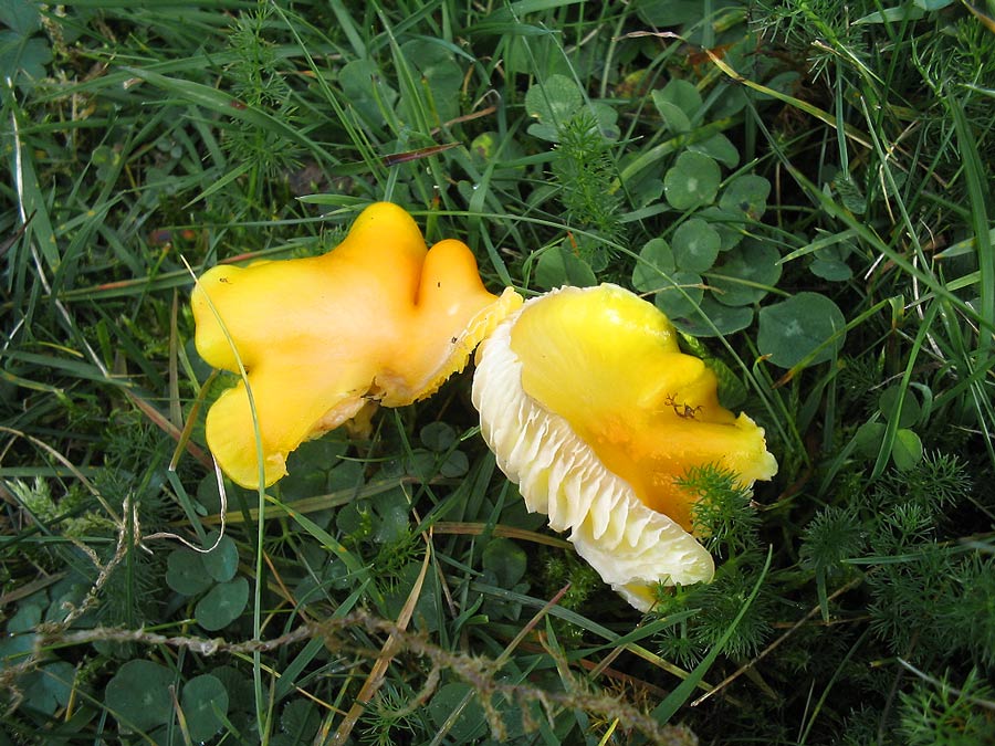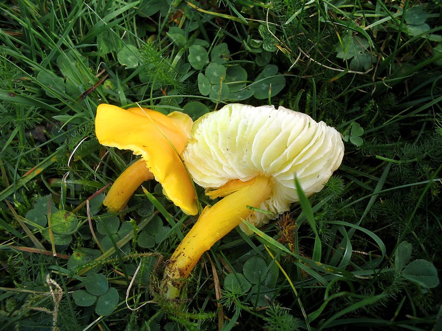 Ähnlich dem H.chlorophana aber mit rein weißen Lamellen und zitronen-gelb: