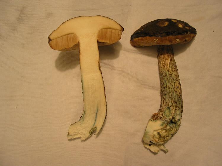 hielt.Fraßstellen am Stiel sind jedoch blaugrün verfärbt.Auf Druck nimmt der Stiel die gleiche Farbe an. Darauf hielt ich ihn für einen
