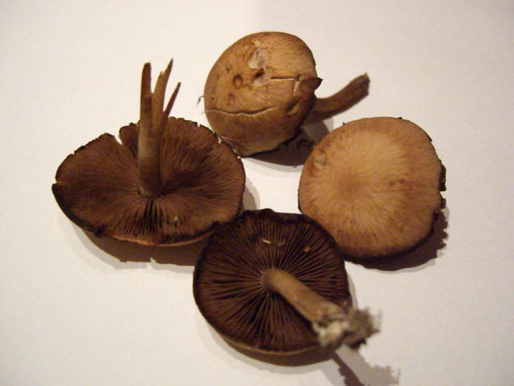 hallo zusammen, hier mal wieder ein kleiner auszug aus meinem eher mageren ausflug ins bergische waldland. im wesentlichen gehts hier um zwei (für mich) neue arten, erstfunde. diesen pilz entdeckten wir an laubholz und hielten ihn im halbdunkel für ein stockschwämmchen. jetzt ist klar, dass es sich dabei nicht um stockschwämmchen handelt, da der typisch geschuppte stiel fehlt und auch die hutoberfläche weniger glatt ist. außerdem sind die lamellen dunkler und wir glaubten uns einzubilden, dass er nach kakao riecht. sporenfarbe dunkelbraun.