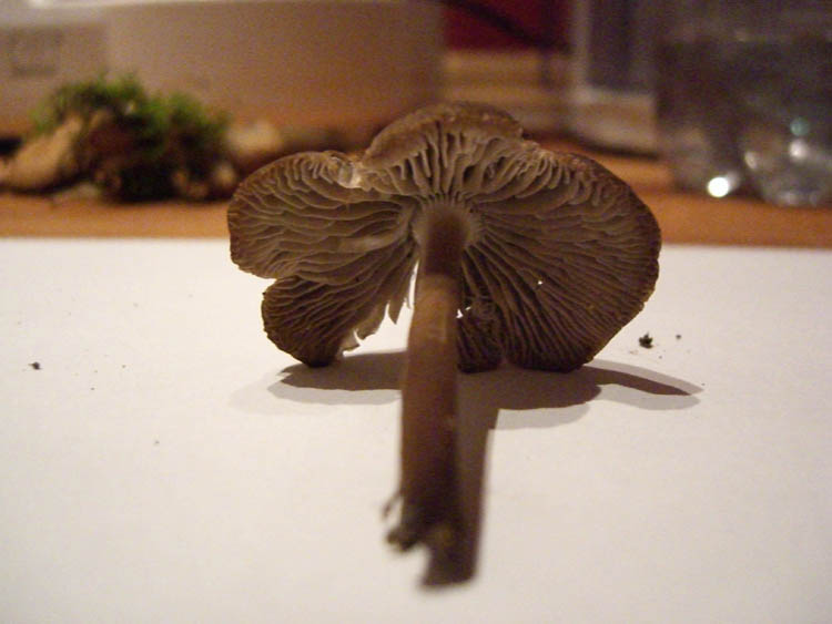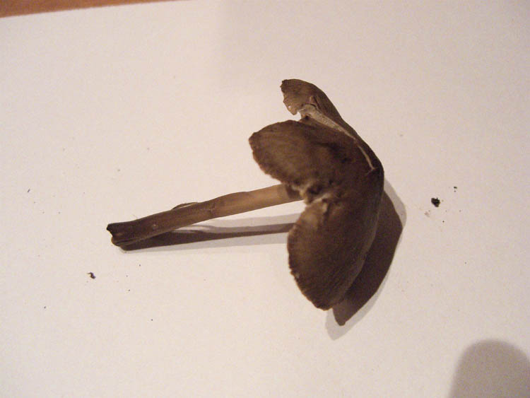 zweiter pilz scheint ein risspilzartiger zu sein...? sporenpulver weiß, hut irgendwie blumenförmig und 4fach untermischte lamellen. leider hab ich die knolle vom stiel nicht mehr (weiß noch nichtmal obs ne knolle war)... der stiel sieht aber irgendwie besonders aus... so seidig-matt schimmernd und für einen pilz dieser größe ziemlich "stabil".