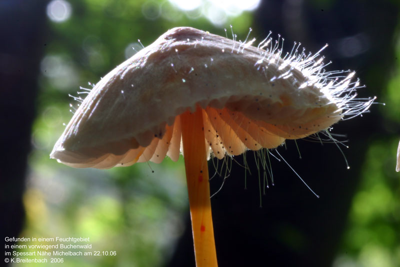 Und mit diesen "Wurzeln" ist der Pilz auf dem Hut des Mcena Wirtes verankert.