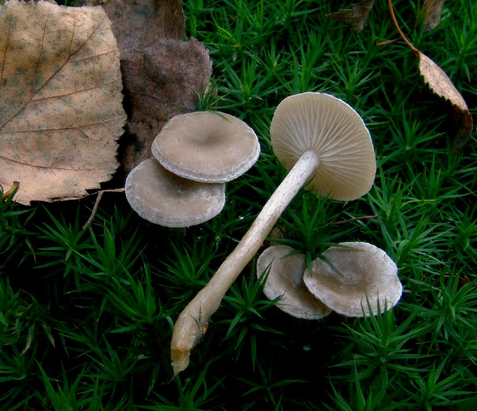 Also Nr.1 wuchs im Moos in einem Birkenwäldchen, hatte einen deutlich bereiften Hut, der 2cm im Durchmesser war. Die Hutfarbe war eher grau als fleischbräunlich. Der Geruch war angenehm pilzig, er roch also weder nach Mehl noch nach Anis, wie es bei einigen Trichterlingen der Fall ist. Mir fällt dazu nur Clitocybe rivulosa ein. Was meint ihr?