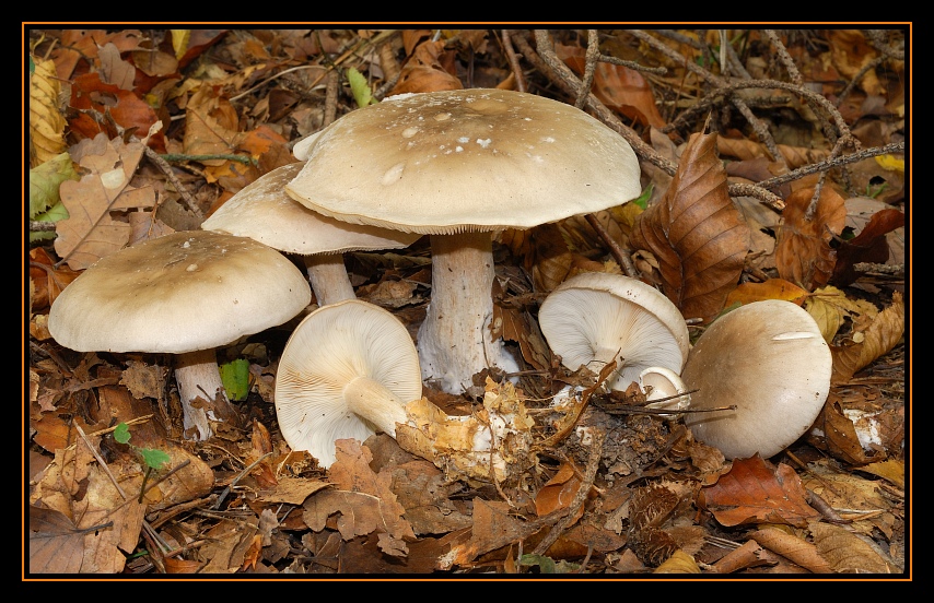 Das seien leider keine Frauentäublinge, meinten wir, sondern schlichte Nebelkappen (oder auch nebelgraue Trichterlinge). Und die seien nun wahrlich keine guten Speisepilze, sondern würden von vielen Menschen überaus schlecht vertragen. Vom Verzehr sei daher eigentlich abzuraten, auch wenn manche Menschen diese Pilze durchaus vertrügen. Hat aber alles nichts geholfen. Die essen wir schon seit zwanzig Jahren, hieß es lapidar. Und uns geht's gut. Na denn: Wohl bekomm's. Es hätte übrigens reichlich Steinpilze und Flockis und Maronen gegeben. Aber das alles kommt gegen einen so vorzüglichen Speisepilz wie die nebelgrauen Frauentäublinge natürlich nicht an ... Mehr Bilder und Berichte (sicher auch von Rudi), sobald das Mikroskop warmgelaufen ist. Gruß