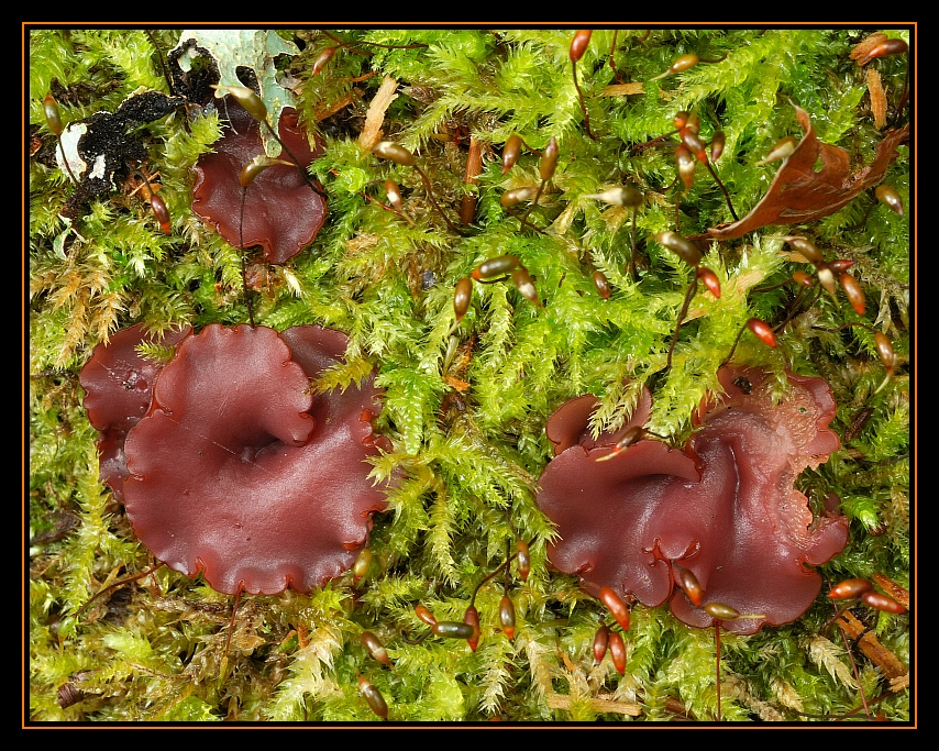 Bei Sporenmaßen von 25 - 28 x 5 µm sollte es sich um Ascocoryne cylichnium, den Großsporigen Gallertbecher, handeln. Der zweite Becher schien zunächst einfacher zu sein: