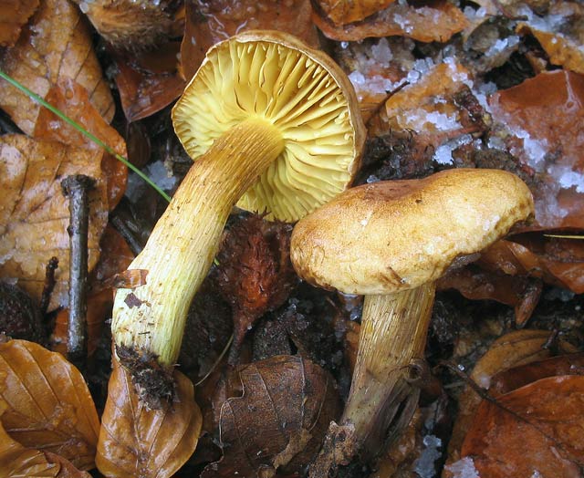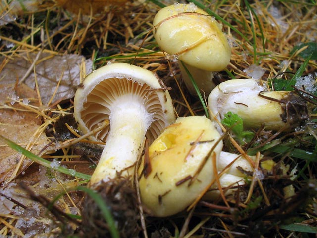 Bei 2 Grad plus und eisigem Wind habe ich dann doch 2 Stunden eine "Abschiedsrunde" gedreht. Der Wald war voll mit allen möglichen Arten - auch habe ich viele frische stoßen sehen. Die werden es sich nun 2mal überlegen noch rauszukommen. Trotz des hässlichen Wetters habe ich noch Erstfunde gemacht. Schwefel-Ritterling Tricholoma sulphureum var. sulphureum Der Leuchtgas-Geruch schleicht gerade durch unser Wohnzimmer ;-)