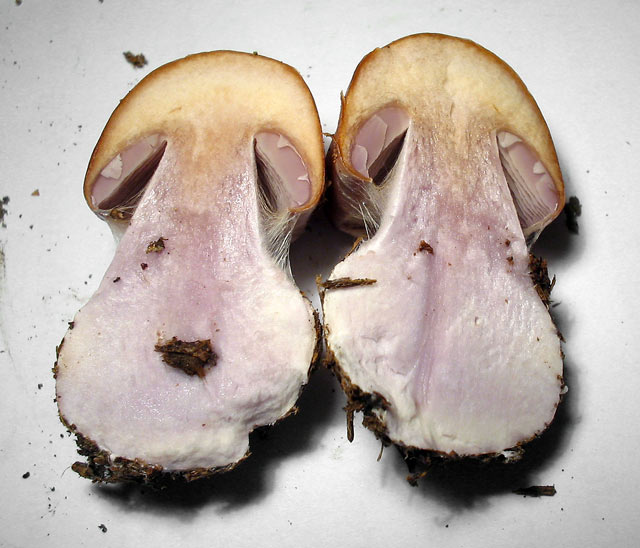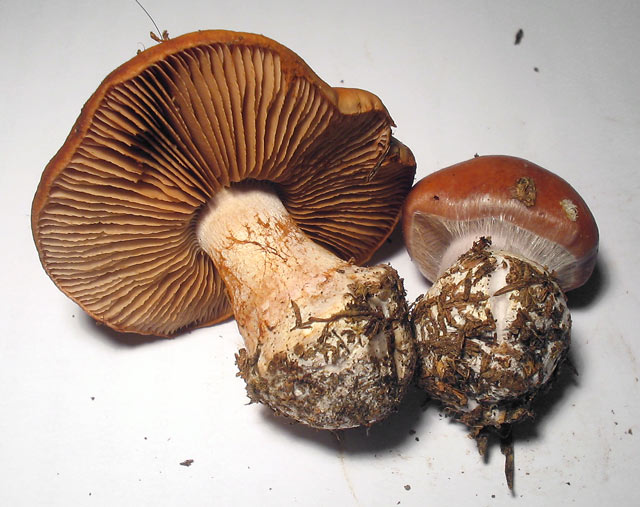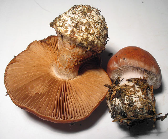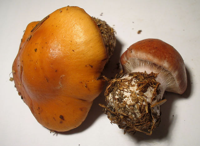 Hut: trocken, Orangerot in der Jugend dunlker, Cortina in der Jugend weiß, Lamellen schwach violett dann rostbraun.