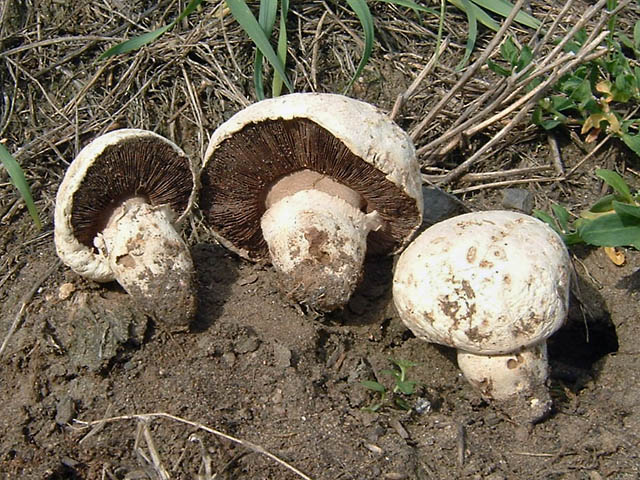 hallo ihr egerlingsfreunde, die resonanz war ja überwältigend... links im bild, wie erwähnt, der schaf- oder anisegerling (agaricus arvensis), quasi im gebüsch an einer schnellstrasse. besagte 40 höhenzentimeter darunter der salzwiesenegerling (agaricus bernardii), in diesem alter kaum zu erkennen, wenn nicht ausgewachsene geschwister dabeistehen. diesem pilz von den küstennahen salzwiesen ermöglicht das streusalz eines fussweges ein leben im süden. die zum teil enorm grossen fruchtkörper (bis 25 cm hutdurchmesser) kann man derzeit auch bei neckargemünd an der auffahrt von rainbach auf den dilsberg bewundern, dort meternah verfolgt vom wiesenegerling (agaricus campestris). hier ein archivbild von agaricus bernardii: ![]() danke den mitratern von coco