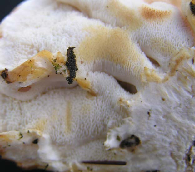 Das, was so aussieht wie Stacheln, sind Poren. (Die Braunfärbungen sind wohl durch Druck entstanden.) Ich habe ihn auch schon jung mit fleischrosa Poren gefunden.