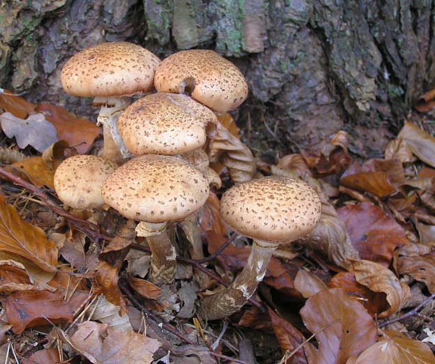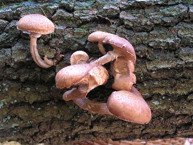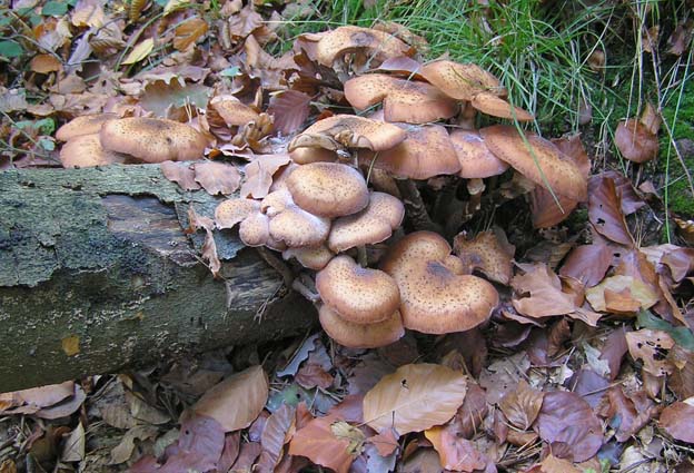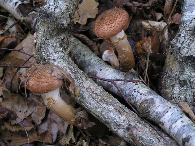 heute habe ich auch bei mir im Hauswald Armillaria gallica gefunden, zwischen Eichen und Buchen, sie wuchsen nicht direkt an Holz, sondern alle auf dem Erboden, ohne erkennbares Holz darunter.