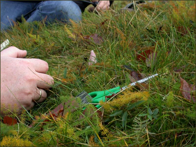 Und jetzt das (fast) unglaubliche. Rainer hatte ohne Zweifel den Rosenroten Saftling gefunden, an einer Stelle, wo Jürgen und ich schon seit 3 Jahren in ca. 10 m Abstand vorbei gelaufen sind. Wir haben uns alle sehr gefreut. Hier schon etwas freigelegt. Wie Rainer später erzählte, lugte nur die Spitze aus dem Bärwurz-Gestrüpp.