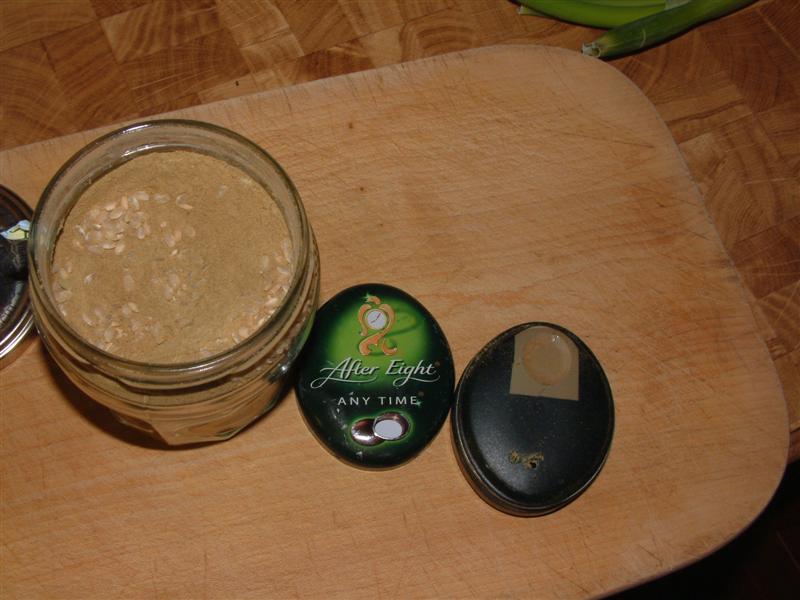 Zurück aus dem Wald möchte ich Euch die Bildausbeute von meinen Steinifunden nicht vorenthalten. In Sachen Steinisuche geht also am kommenden Wochenende bei uns „Nordlichtern“ wirklich noch was, wenn man genügend geeignete Stellen kennt. Zumindest gilt das in „meinen Pilzrevieren“, in denen seit Mitte Oktober nach langer Trockenperiode kaum noch Pilzsucher aktiv sind. Zu den „Steiniopas“, die zuweilen auch in meinem Pilzkorb zu sehen sind, möchte ich anmerken, dass ich die Schwämme der „Steiniopas“ in meinem Dörrgerät trockne, damit ich immer genug „Steinistaub“ vorrätig habe, den ich schon seit Jahren an mir geeignet erscheinenden Stellen im Wald mit meiner „After Eight-Dose“ in die Gegend puste. (s. Bild 10). Den „Steinistaub“ halte ich mit Reiskörnern trocken. Nachweislich finde ich von Jahr zu Jahr mehr Steinpilzstellen und Steinpilze. Ob das auch am „Steinistaub“ liegt, kann ich noch nicht sagen. Steinibilder aus dem Schaumburger Wald