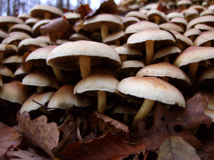 letztes wochenende waren wir wieder im oberbergischen unterwegs... gesamteindruck: besonders viele nebelkappen, schwefelköpfe und noch ein paar halbwegs gut erhaltene täublinge standen herum. daneben massenweise vergammelte hallimasch, stockschwämmchen und ausgebleichte grünspanträuschlinge, falsche pfifferlinge, gelbstielige muschelseitlinge... und sogar einen ganz alten vergammelten flocki, davon besser kein foto. lieber die hier: