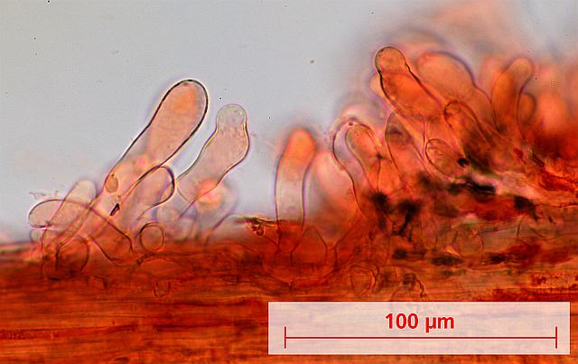 Kaulozystiden an der Stielspitze in Kongorot: