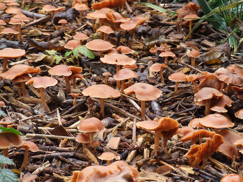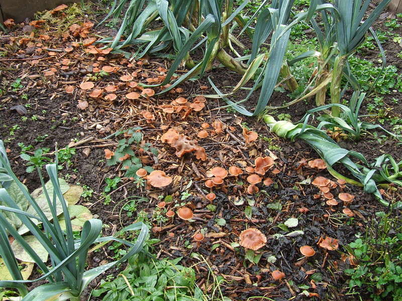 Hallo Pilzfreunde (Ich hoffe, dass es diesmal klapp mit den Bildern) Seit mehreren Jahren wachsen in unserem kleinen Gemüsegarten Trompetenschnitzlinge. Zwischen zwei Beeten wo ich immer Holzhäcksel streue erscheinen sie jeweils zum Saisonende und bleiben dann über den Winter durch erhalten. Vermutlich wetterbedingt haben sich dieses Jahr gegen hundert Fruchtkörper gebildet oder bilden sich immer noch. Erstaunlich für mich ist auch, dass sich kaum zwei Meter daneben zwischen den anderen Beeten die ich gleich behandle keine Fruchtkörper bilden.