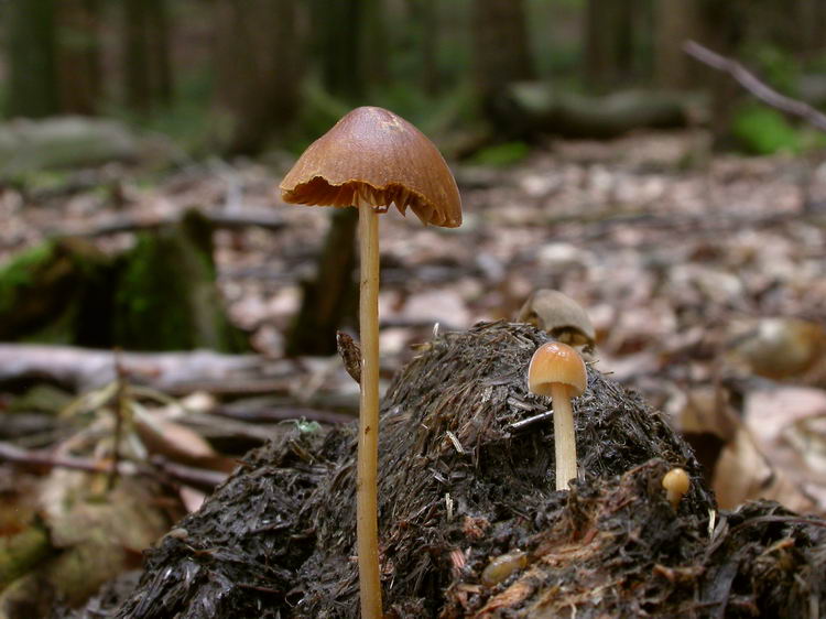 Funddaten: 10.08.2006; MTB 8136/3/2/4, 800 m; Taubenberg, im Mischwald (Fichte, Tanne, Lärche, Buche) auf Dung; gesellig; Hut: ca. 2 cm breit, zimtbraun (jung heller orangebräunlich), hygrophan, durchscheinend gerieft; Stiel: bis 7 cm lang, zylindrisch, dünn, gebrechlich, längsrillig und feinst behaart, orangeocker, durchscheinend glänzend, Basis jung rundknollig verdickt; Lamellen: +/- hutfarben; Basidien: 4-sporig; Cheilozystiden: typisch lecythiform, z.B. 20x7x4, Kopfbreite ca. 4-5 µm; Pleurozystiden: -; Kaulozystiden: nicht lecythiform, keulig bis knubbelig (amorph), jedoch mit fädigen Elementen; HDS: zellig, mit gelb pigmentierten +/- keuligen bis kopfigen "Pileozystiden" und vereinzelten fädigen Elementen; Sporen: elliptisch bis oval, dickwandig, mit großem KP, 14,4 x 8,4 (13-15,5 x 7,5-9), Q=1,71 (10 Sp. gemessen);