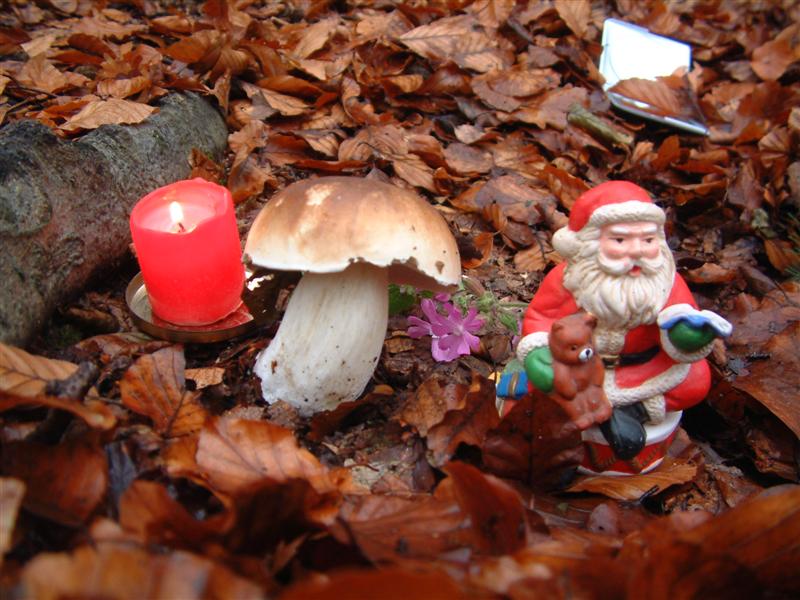Hallo Pilzfreunde! Draußen vom Walde komm ich her, da gibt es nun keine Steinis mehr ............ Falsch! Einen schönen Weihnachtssteini hab ich heute doch noch gefunden, aber der Weihnachtsmann war schon vor mir da.