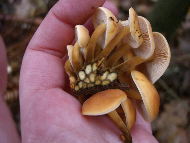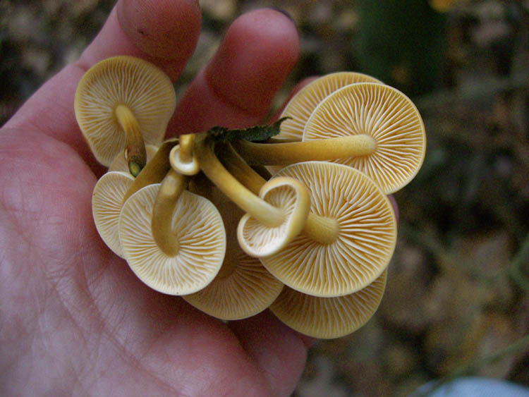 hut in leuchtend warmen farbtönen (orange etc.), fühlte sich glatt, trocken, aber leicht klebrig an, hutrand sehr hell, stiel zur basis hin dunkler werdend (braun) und samtig schimmernd, an laubholz. lamellen helles cremegelb, untermischt, am stiel leicht ausgebuchtet. hutdurchmesser entsprach ca. einem 1-euro-stück und kleiner. bin mir zwar ziemlich sicher, aber würde mich trotzdem sehr über bestätigung von anderen freuen!! habe sie noch nie zuvor gefunden und hab mich gefreut wie ein schneekönig :) lg