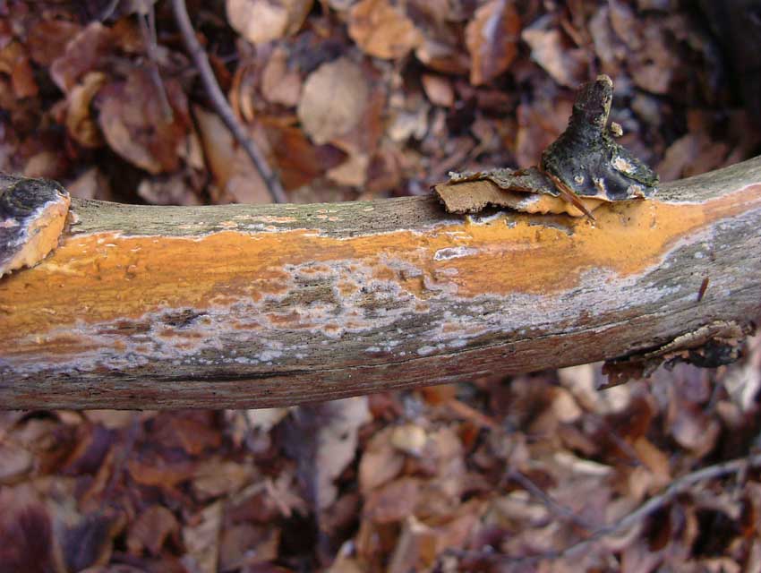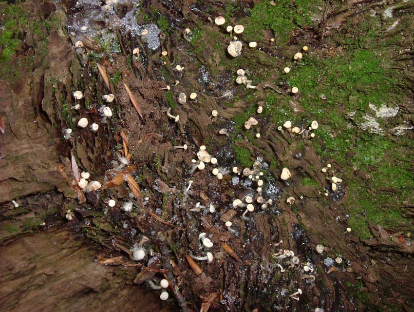 Bestimmungshilfe erbeten, Pilze an Holz - 8 Bilder