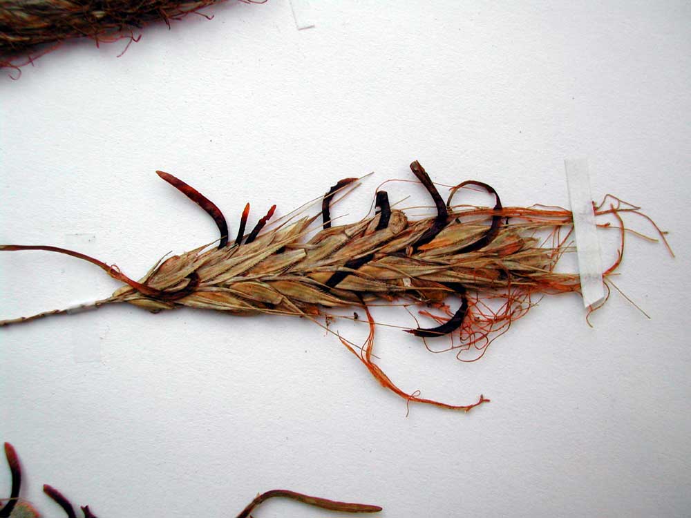 Hallo, folgend drei Bilder. Der Beleg stammt von 1880. Leider steht sonst garnichts dabei. Mit Sicherheit weiß irgendjemand von Euch, um was es sich hier handelt. Was, wenn kein Pilz? Mutterkorn müsste ja kompakt sein, die Gebilde sind eher hohl-zusammengedrückt.