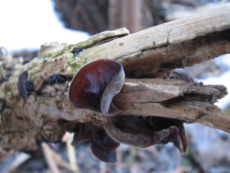 Hallo Forumsteilnehmer, ich bin gestern mal am Ufer unseres Baches entlang gegangen und habe tatsächlich was gefunden: 1.Gefrorenes Judasohr an Holunder: