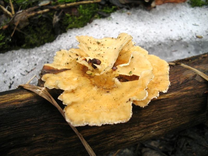 Hallo, ich habe mal wieder zwei Fragen an Euch: Auf dem heutigen Streifzug, habe ich an einem liegenden Buchen-Ast folgende Pilze gefunden: