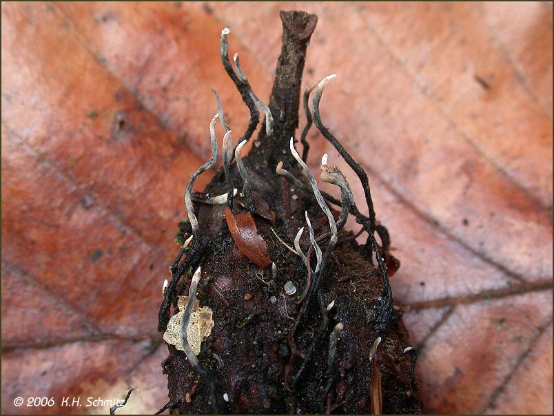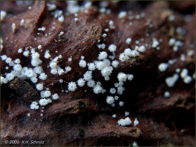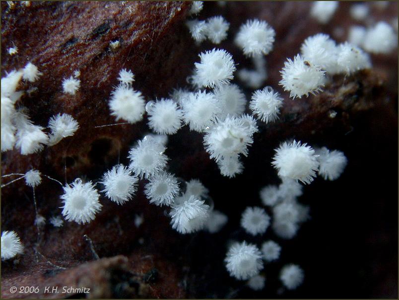 Die Suche nach dem mir bekannten Weißen Haarbecherchen Lachnum virgineum (Batsch:Fr.) Karst. blieb lange erfolglos. Schließlich fand ich eine Kupule mit weißen Pünktchen. Durch die Zwanziger Lupe konnte ich auch etwas erkennen. Sah aber nicht aus wie die mir bekannten Weißen Haarbecherchen, da ich keine becherförmigen Fruchtkörper ausmachen konnte, sondern eigentlich nur Haare. Bin dann mal ganz nah herangegangen. Kann es sich trotzdem um Lachnum virgenium handeln oder doch eher um etwas anderes?