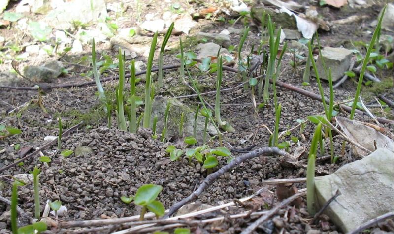 Wie ihr seht, er sprießt gerade erst. Der Bärlauch ist für mich auch ein Zeichen ob es schon Morcheln gibt. Voriges Jahr kamen die Morcheln als der Bärlauch kurz vor der Blüte stand. Wachsen tut er neben und in der Erosions-Rinne in der vor einer Woche noch das Schmelzwasser floss. Links und rechts neben der Rinne ist es am interessantesten da stehen die Eschen und später die Morcheln.