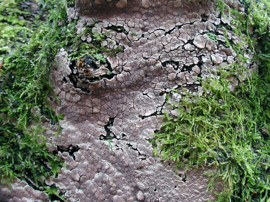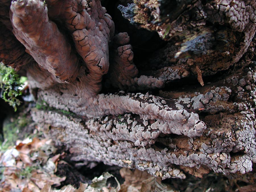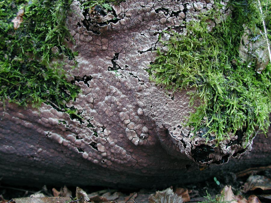 "Erhabenes" dazwischenschieben: Mosaik-Schichtpilz, Xylobolus frustulatus