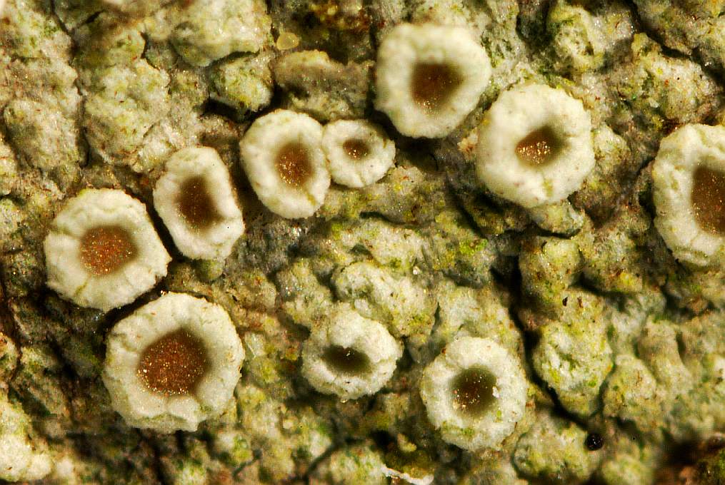 Vielen Dank, Christa. Lecanora mag schon stimmen. L. sambuci (wenn halt das Substrat passen würde) oder L. saligna kämen hin (siehe die jungen Exemplare auf http://kmubserv.tg.fh-giessen.de/pm/page.cfm?PRID=20&CFID=570336&CFTOKEN=154363&PID=250) Ich hatte noch Caloplaca cerina überlegt und Ochrolechia-Arten, aber weil ich von Flechten einfach keine Ahnung habe, dann doch eigene Bestimmungsversuche aufgegeben und auf munteren Zuspruch hier gehofft. Ich hätte die Flechte auf dem Ästchen ohnehin beinahe übersehen, weil das Thallus-Fitzelchen insgesamt nur ein paar Millimeter breit ist und die Apothecien mit bloßem Auge schier nicht zu erkennen sind. Erst unter der Kamera wurden sie schön sichtbar: