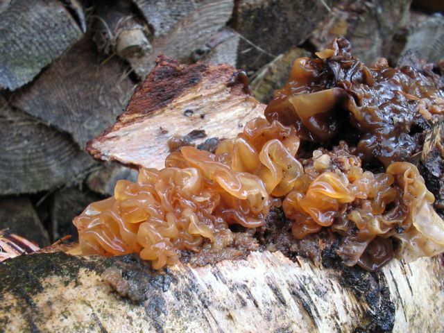 An Birke, der Rotbrauner Zitterling (Tremella foliacea)