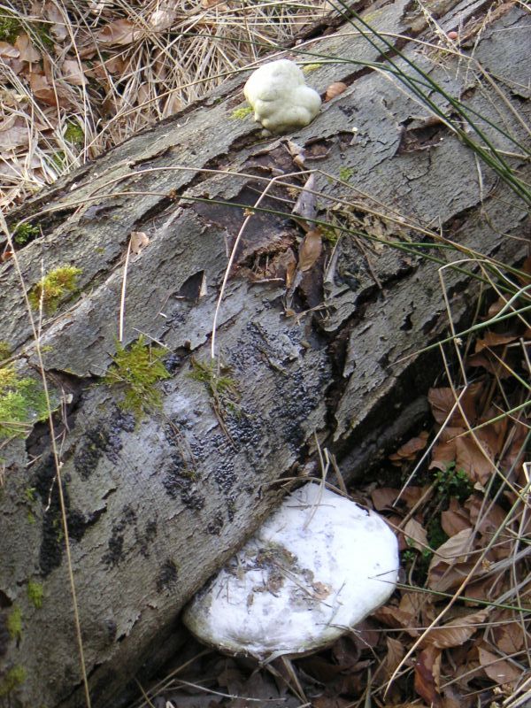 Hallo allerseits, bin neulich in einem Mischwald gewesen, gab leider überhaupt nix frisches zu sehen (pilzmäßig meine ich). Dafür hab ich einige Zecken aufgesammelt. Und außerdem diesen seltsamen Porling gefunden. Seltsam deshalb, weil er komplett bepudert war. Knapp oberhalb sind noch ein paar alte Blutmilchpilze, wenn ich das richtig seh. Die sind auch bepudert, aber wohl nicht für das weiße Zeug verantwortlich. Am selben Stamm war übrigens noch ein bepuderter Fk. Kann mir jemand sagen, was da los ist?