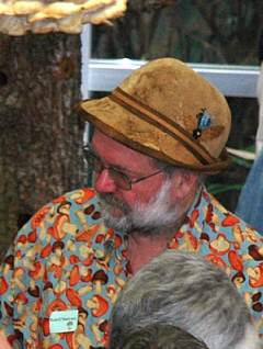 Hallo Ismene, Rudi hat vor etwa einem halben Jahr sich und mir einen Hut aus Zunderschwamm besorgt - ich weiß gar nicht genau, wo (vielleicht verrät er's uns, wenn er aus dem urlaub zurück ist). Ein solcher Hut ist übrigens auch bei Ryman, Svengunnar und Ingmar Holmåsen (Pilze. Braunschweig (Thalacker) 1992) unter dem Thema Zunderschwamm abgebildet. Ob diese Hüte heute nur noch als Touristenattraktion hergestellt und verkauft werden oder tatsächlich in Rumänien eine Bekleidungsrolle spielen, kann ich nicht sagen. Was ich aber sagen kann, ist dies: Das Material hat die Qualität und den Griff von Wildleder, ist aber natürlich fester. Es trägt sich klimatisch recht angenehm. Man wird allerdings von allen Menschen schnell als Zausel abgetan, wenn man damit auftritt. So jedenfalls sieht Rudi unter Zunder aus: